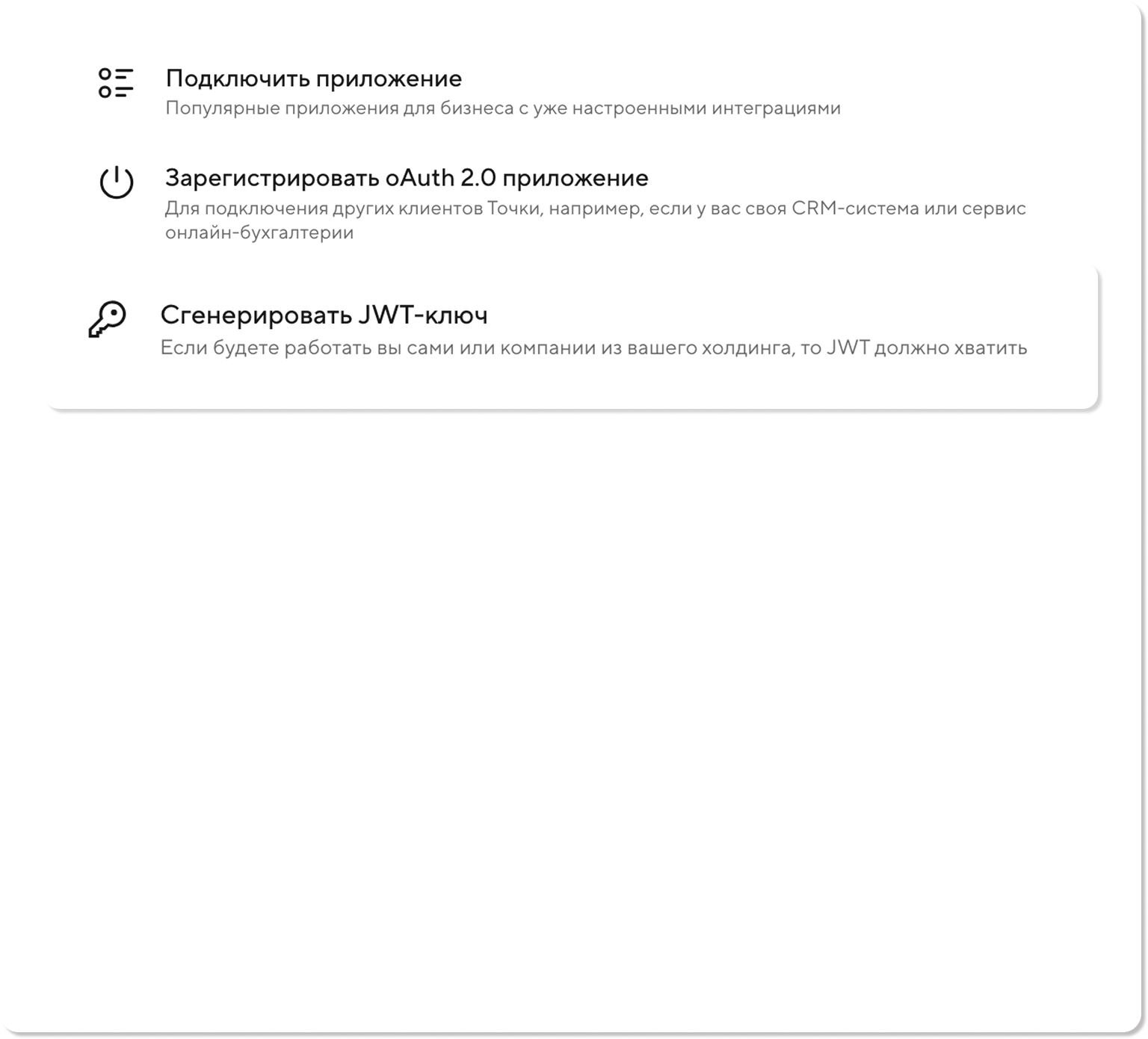 Выпуск JWT-ключа в интернет-банке, если у вас есть открытый счет
