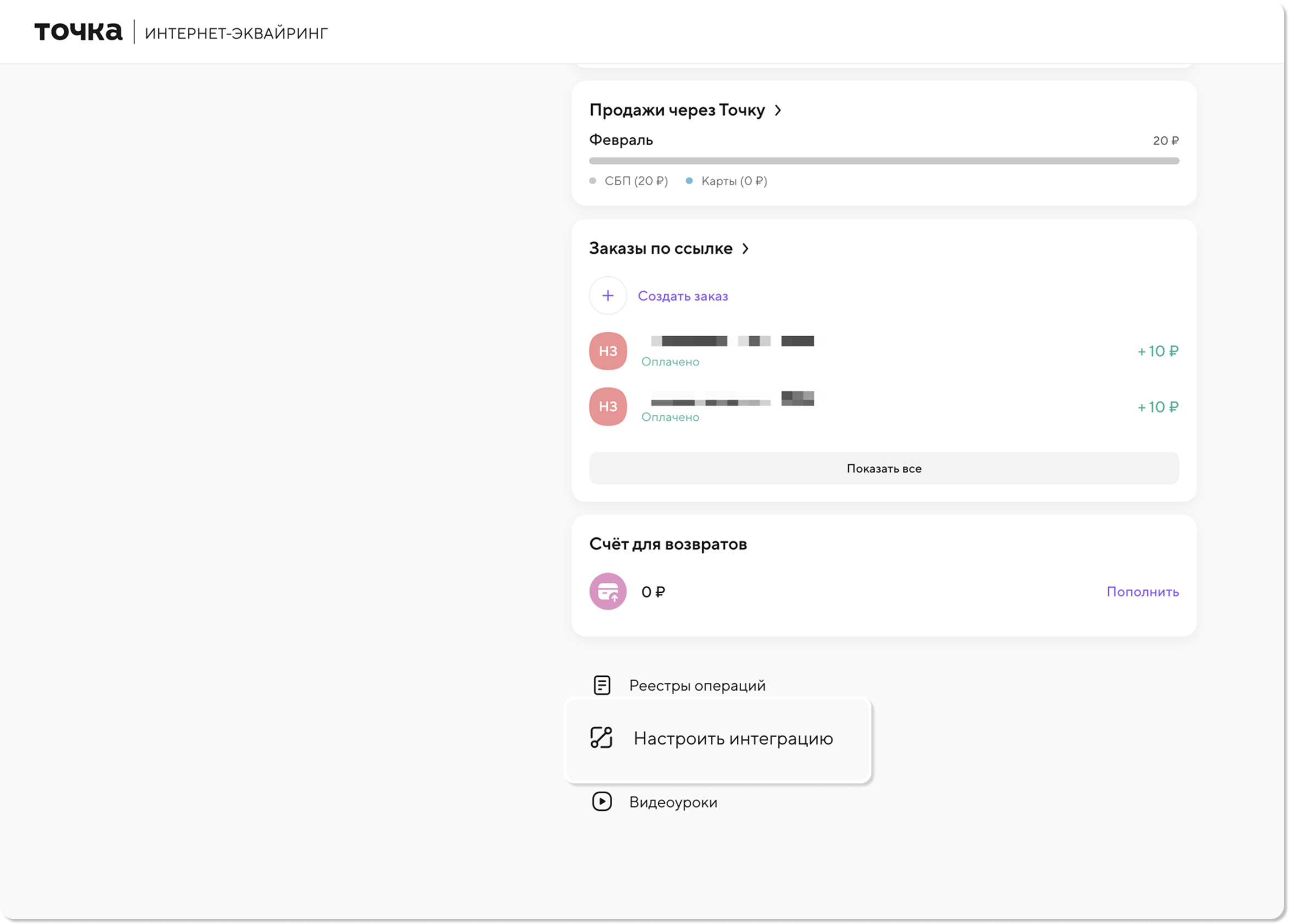 Подключение интеграции с банком Точка