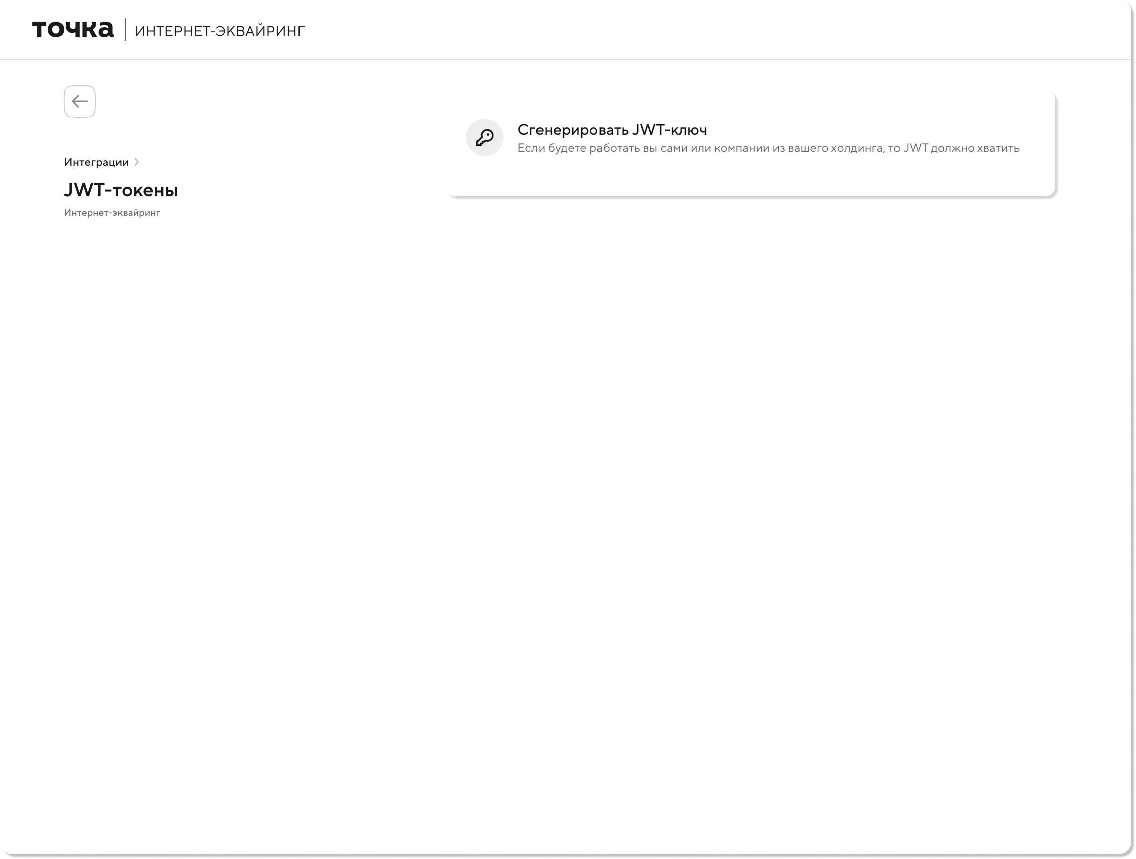 2) В открывшимся окне в блоке JWT-ключи нажмите Сгенерировать JWT-ключ.