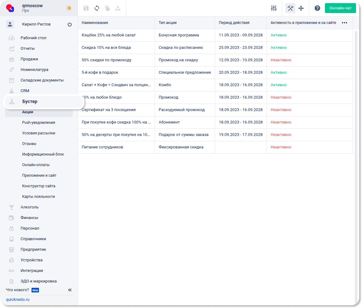 5. В вашем бэк-офисе появится раздел Бустер, в котором нужно сделать настройки отображаемой информации в продуктах. Наш специалист по внедрению окажет вам помощь в настройке этих данных.