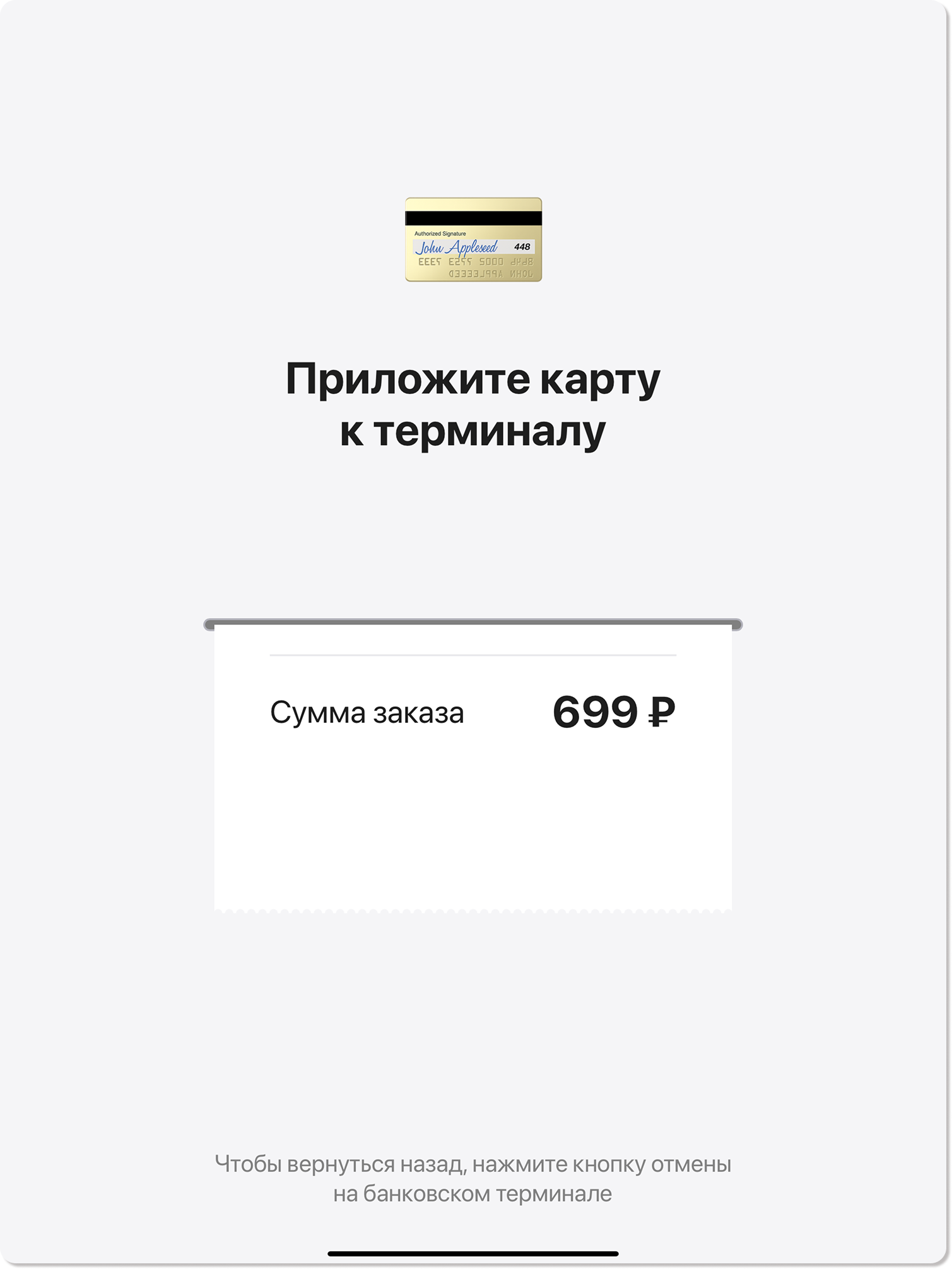 6. Приложите карту к банковскому терминалу для оплаты заказа.