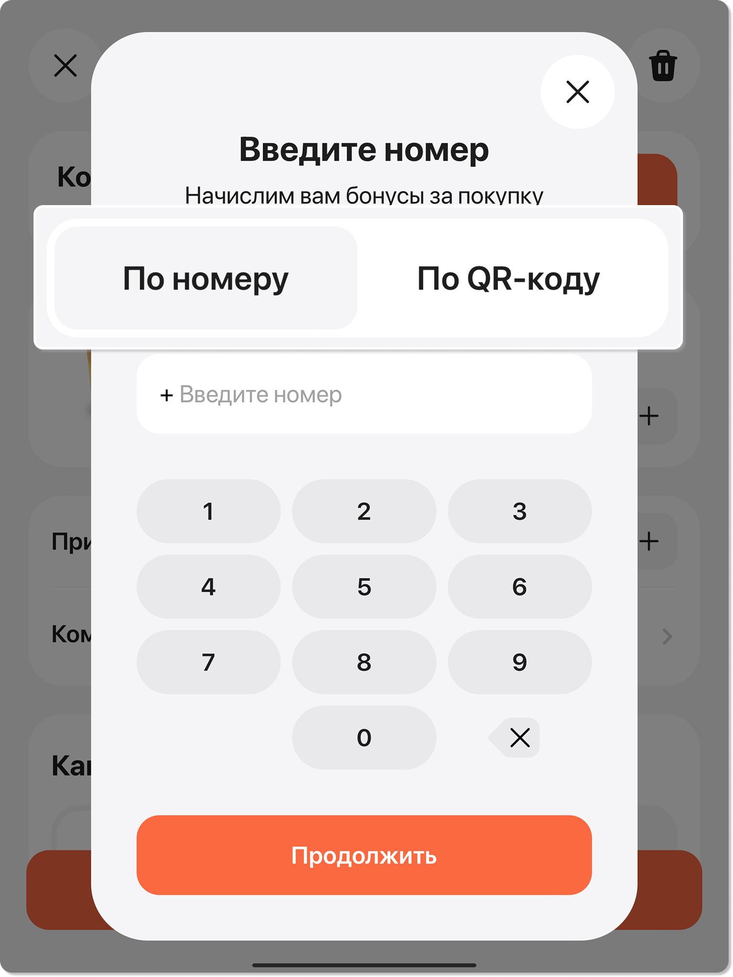 Для входа пользователь может использовать номер телефона или авторизоваться по QR-коду (используя QR-код карты лояльности или мобильного приложения).