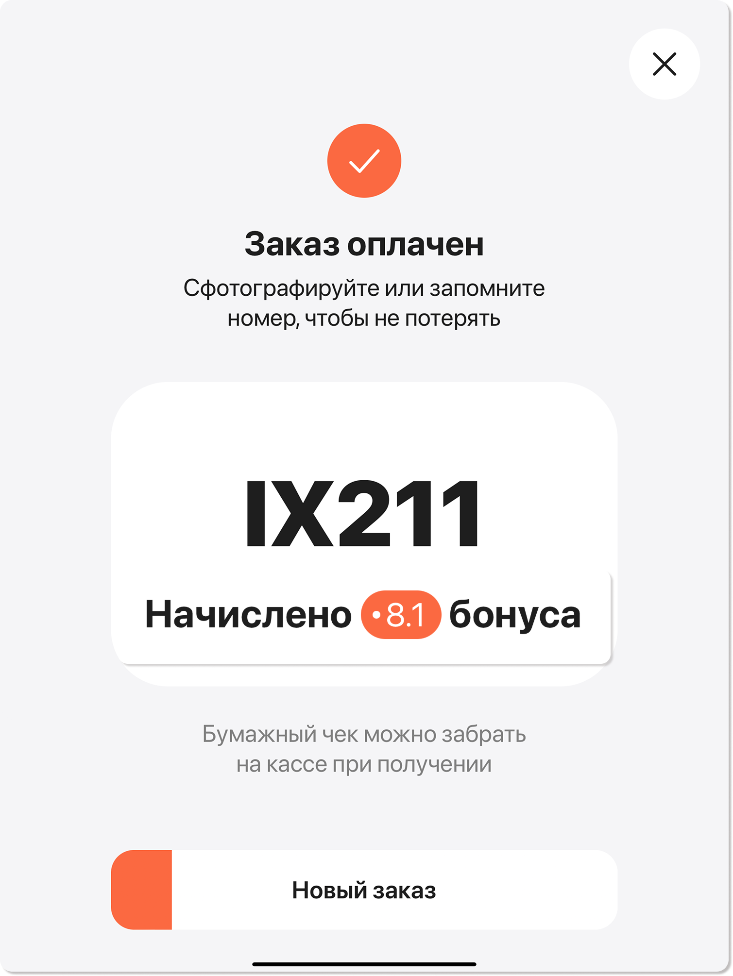 7. После успешной оплаты на экране появится номер вашего заказа. Сфотографируйте его или запомните, чтобы назвать при получении на кассе.