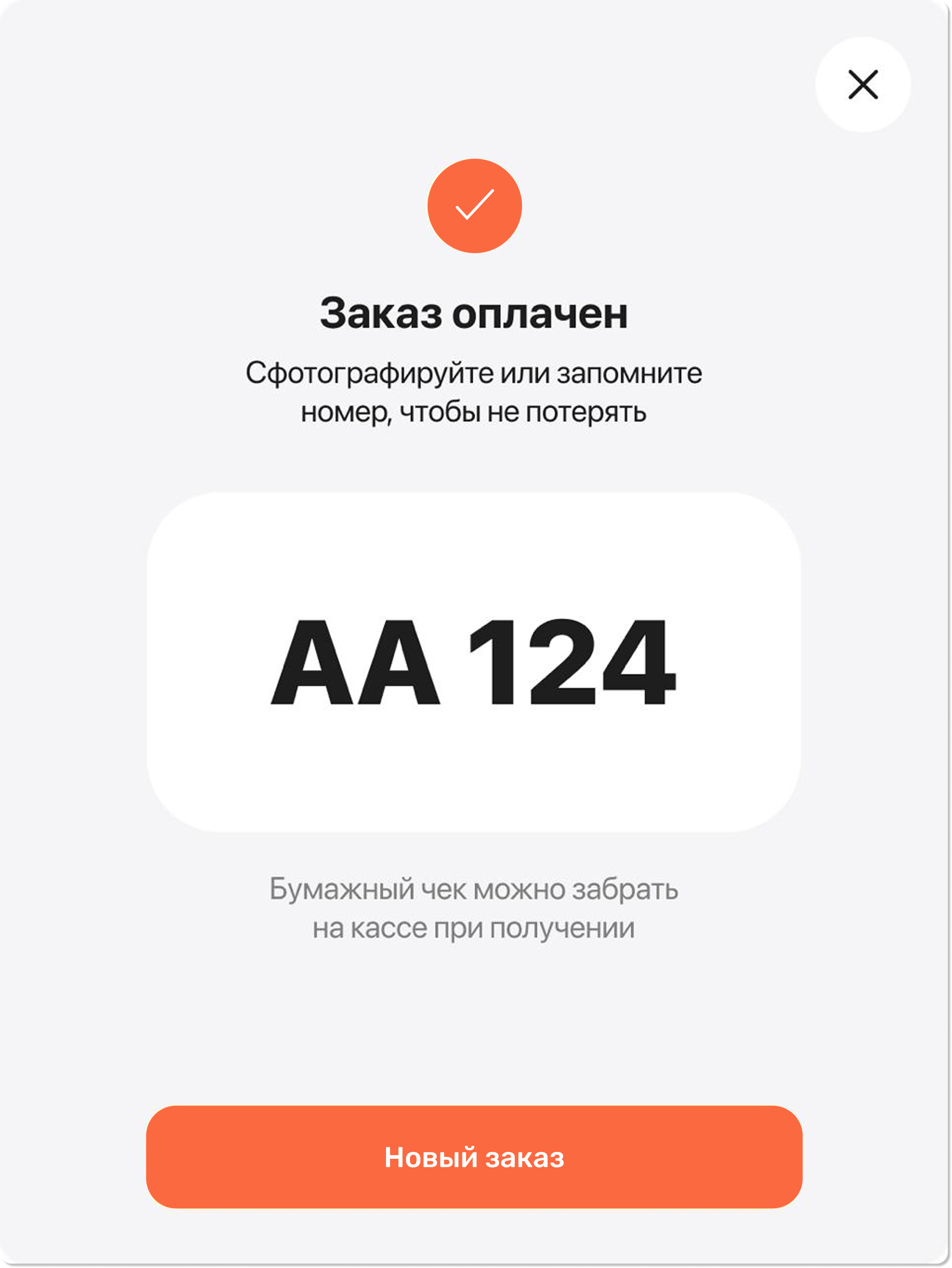 7. После успешной оплаты на экране появится номер вашего заказа. Сфотографируйте его или запомните, чтобы назвать при получении на кассе. При желании, бумажный чек вы также сможете получить на кассе.
