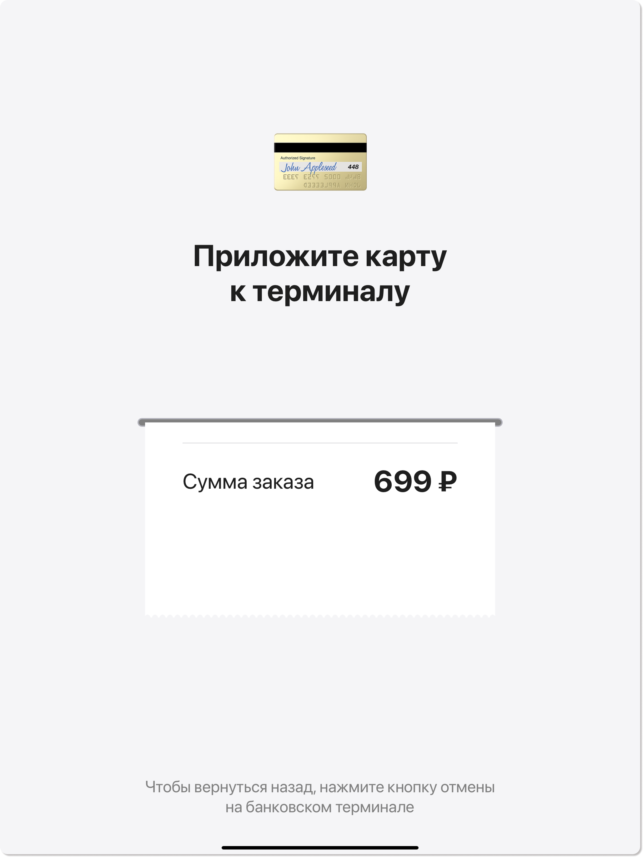 6. Приложите карту к банковскому терминалу для оплаты заказа.
