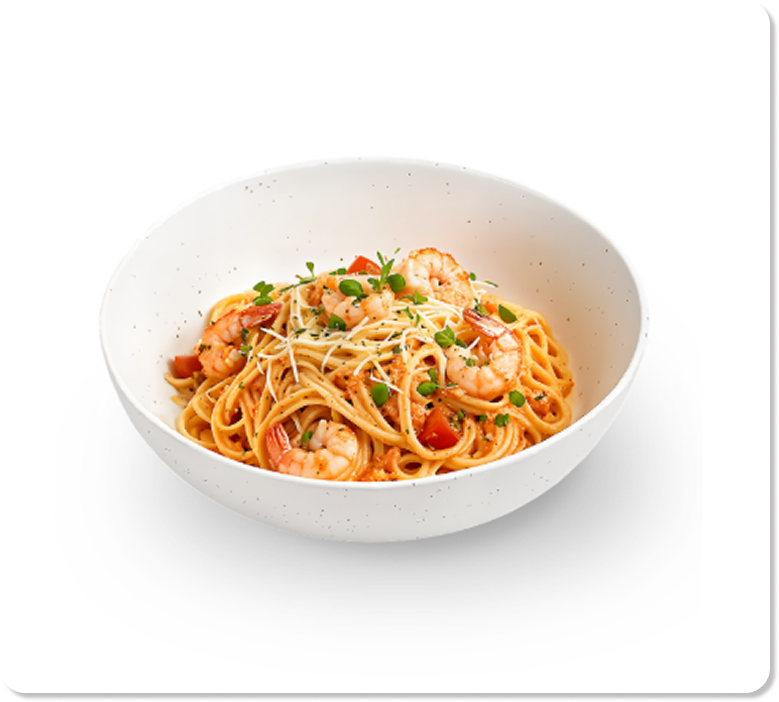 Для создания современного и минималистичного стиля в вашем цифровом меню (в приложении, на сайте или киоске самообслуживания) рекомендуем использовать фотографии блюд на прозрачном или нейтральном фоне в качестве основных изображений. Такой подход обеспечивает единый, чистый стиль и позволяет сосредоточить внимание пользователя исключительно на самом блюде, не отвлекая его посторонними деталями.