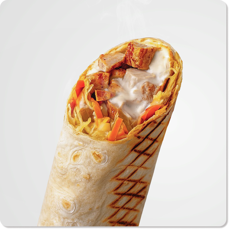 Детализация: Разрежьте шаурму по диагонали. Это позволит пользователю ясно увидеть все компоненты внутри: мясо, овощи, соус.