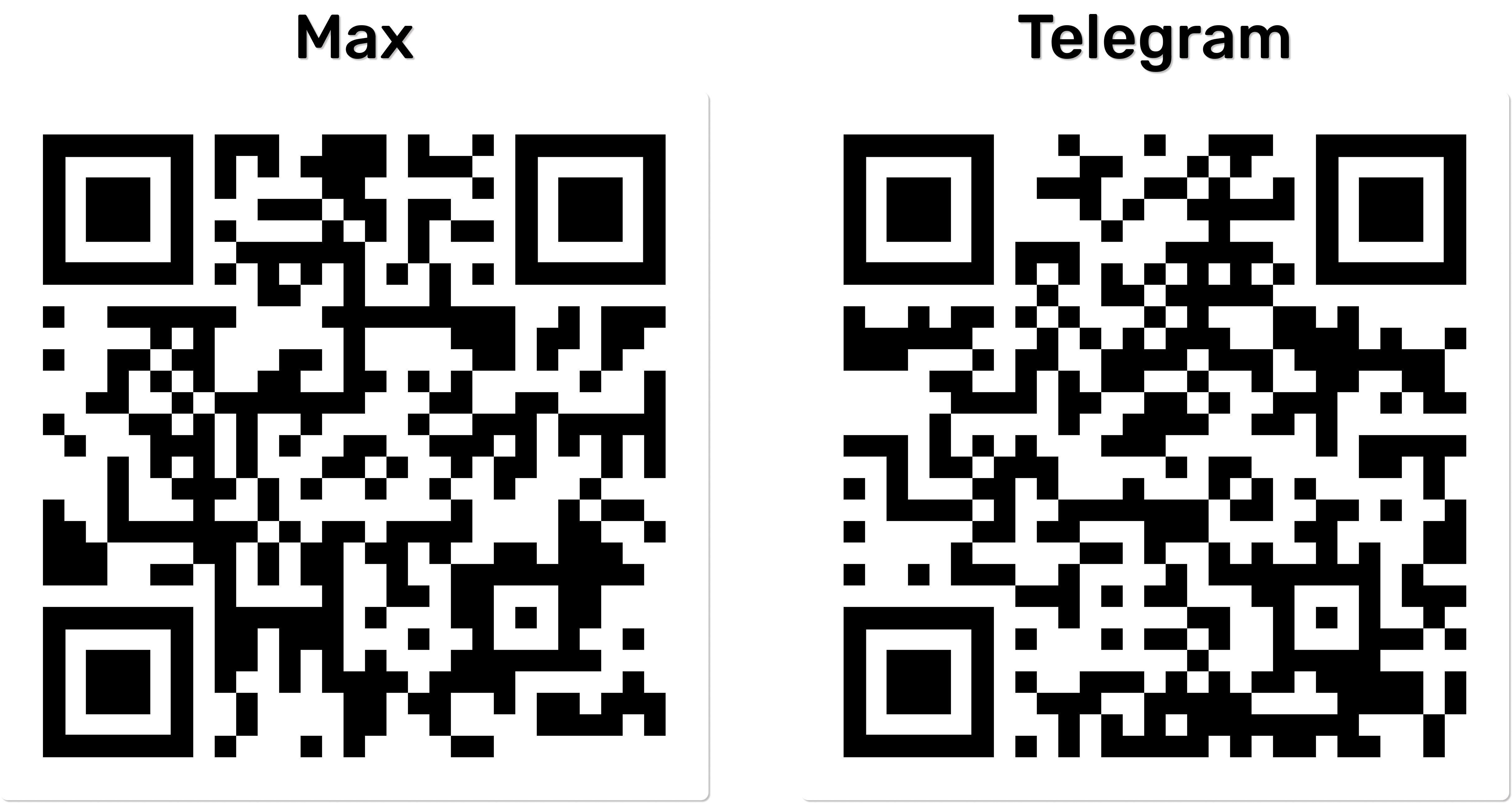 Вы можете связаться со службой поддержки через мессенджеры Max и Telegram. Для этого используйте QR-коды или прямые ссылки.