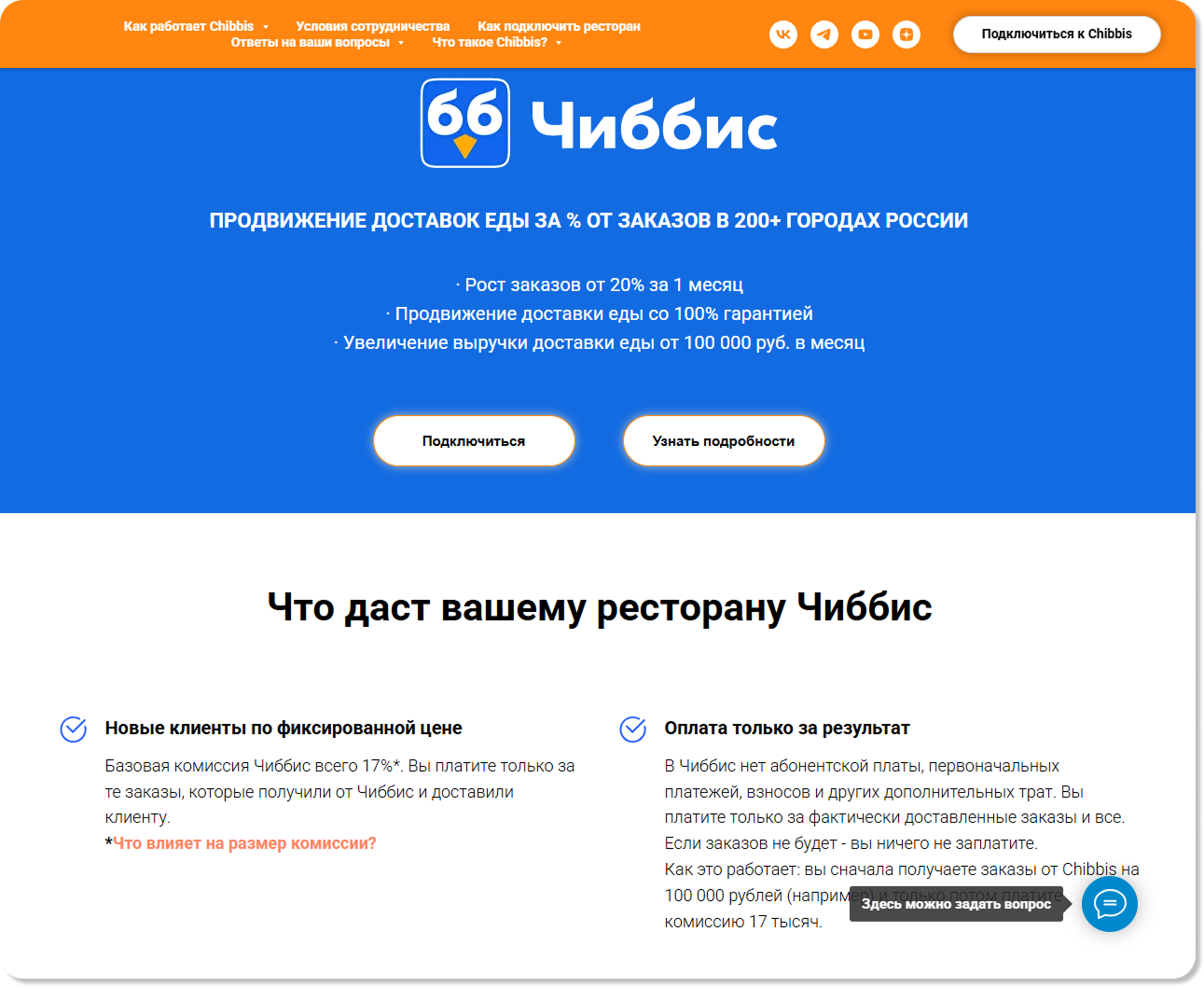 2. Доставлять заказы клиентам как с помощью курьера Чиббис, так и силами курьера вашего заведения.