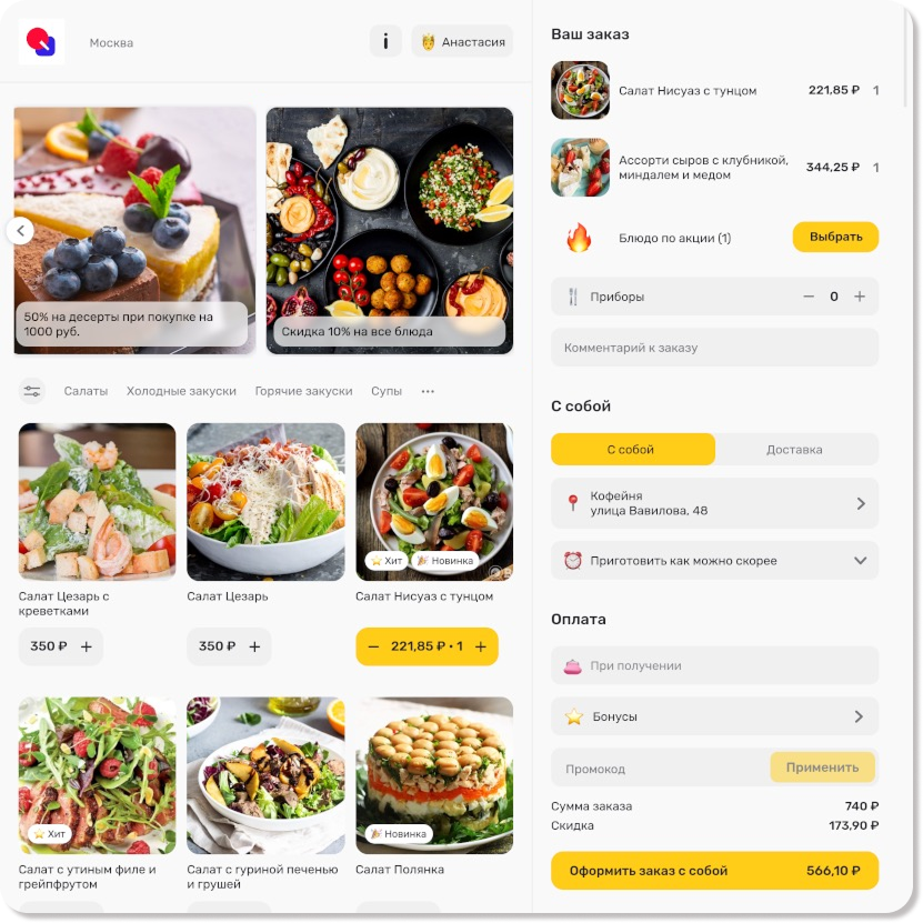 Настроенные изображение и описание скидки появятся в верхней панели на сайте заведения.