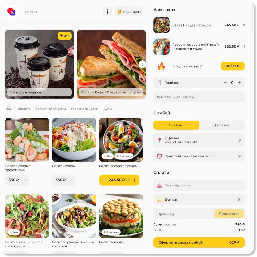 Настроенные изображение и описание акции появятся в верхней панели на сайте заведения.