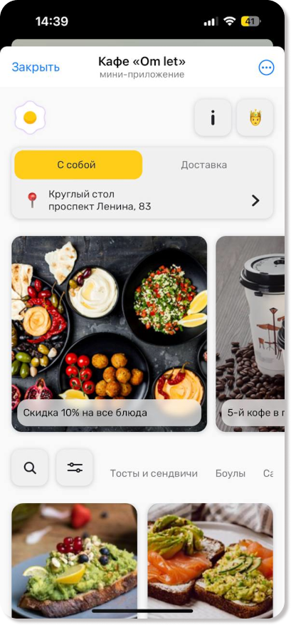 Настроенные изображение и описание скидки появятся в верхней части мини-приложения.
